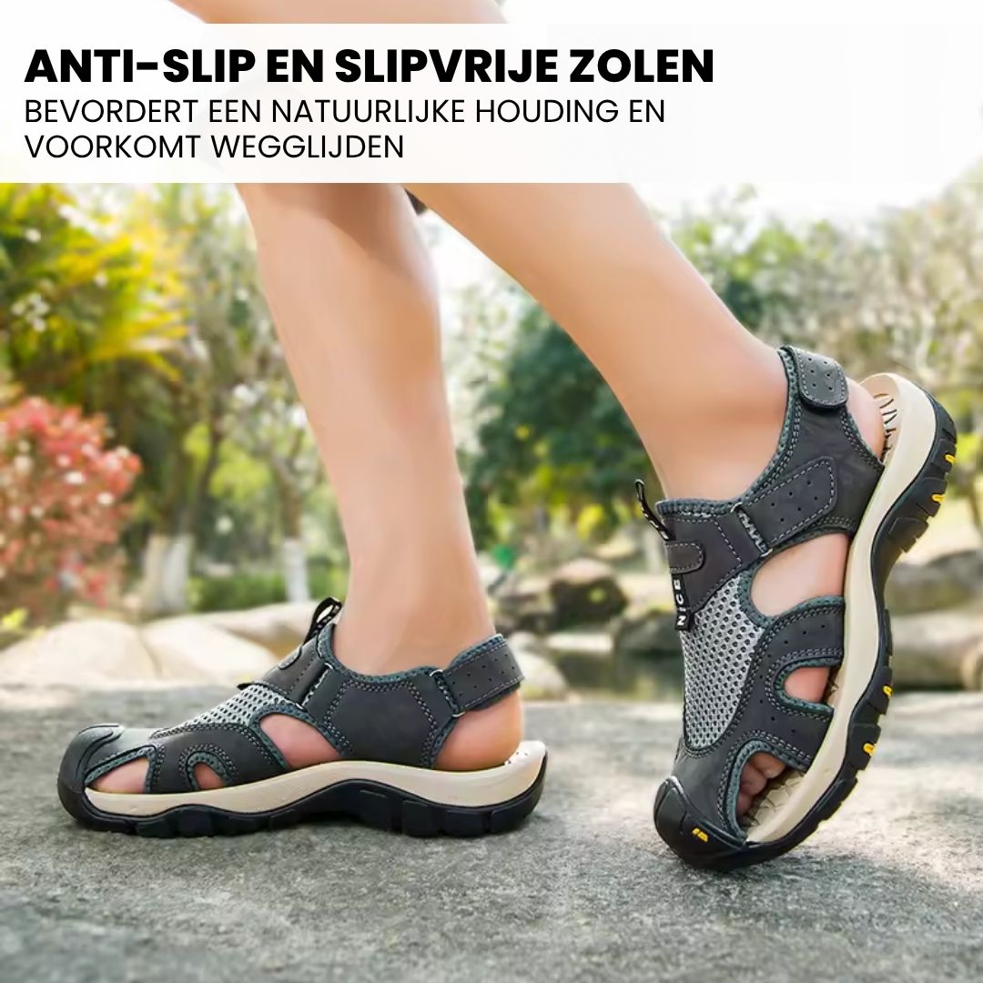 Laat voetpijn je niet beperken. Met OrthoSun – ergonomische pijnstillende sandalen voor mannen kunt u zonder klachten actief blijven –.